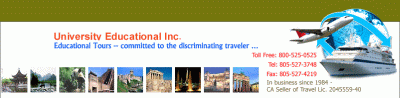 * ARCHAEOLOGICAL TOURS * ART TOURS * RIVER CRUISES * HISTORY TOURS * THEATRE TOURS * ARCHITECTURAL TOURS * ETHNOLOGICAL TOURS * SPECIAL INCENTIVE TOURS * BUDGET TO DELUXE * ALWAYS EDUCATIONAL