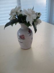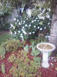 The gardenia bush drooped with many blossoms and the fragrance took my breath away when I was sitting on the patio.