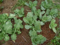 My collard plants are going into their third year in my garden. I have recently been informed that they are perennials. Their stems are around one inch in diameter and they look like little trees. The leaves are small, tender and sweet. I have several collard recipes that will put on my Artful Cooking page, but just chopping the leaves into 1/4 inch pieces and simmering them in one quarter inch of water yields an aromatic and extremely healthful side dish. Adding a pat of butter, salt and pepper, makes this really tasty. Not only are my three year old collards doing well, but last summer, I let them bolt. They grew long stems of lovely yellow flowers which the bees loved. The flowers soon became seed pods which dried. I broke them and let the seeds spray down on the soil below the plants. For months, nothing happened, then suddenly in late summer little collard seedlings began to appear. I am watching them and monitoring how they will grow.