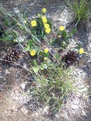 I took this picture with my phone when walking Charley in Carolina Beach State Park. There are certain spots in the woods where prickly pears grow and in the spring they bloom with lovely yellow flowers.