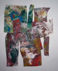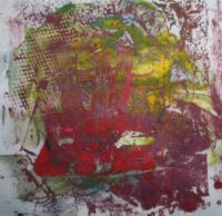 Mono-printing is a one-time printing method--only one print is made from the print source which can be a painting on a smooth surface or a plate made from material like cardboard, mat board, plastic or metal. When the painting is completed, paper is pressed down on the painted surface and pulled away. Again, the same surprise factor is there and it can be either awkward/unbalanced or a joyful result. Mono-print is a vigorous, fun activity, especially for children. There is no carving into material (as there is with wood block or linoleum block) so the process is much easier for a child. The painting can be done on any smooth surface and produces exciting and often impressive results.